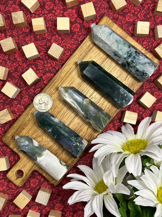 Natural Moss Agate Crystal Tower Point Moss Agate Obelisk Multiple Size Crystal Metaphysical Gift Or Healing Crystal Collection Home Decor