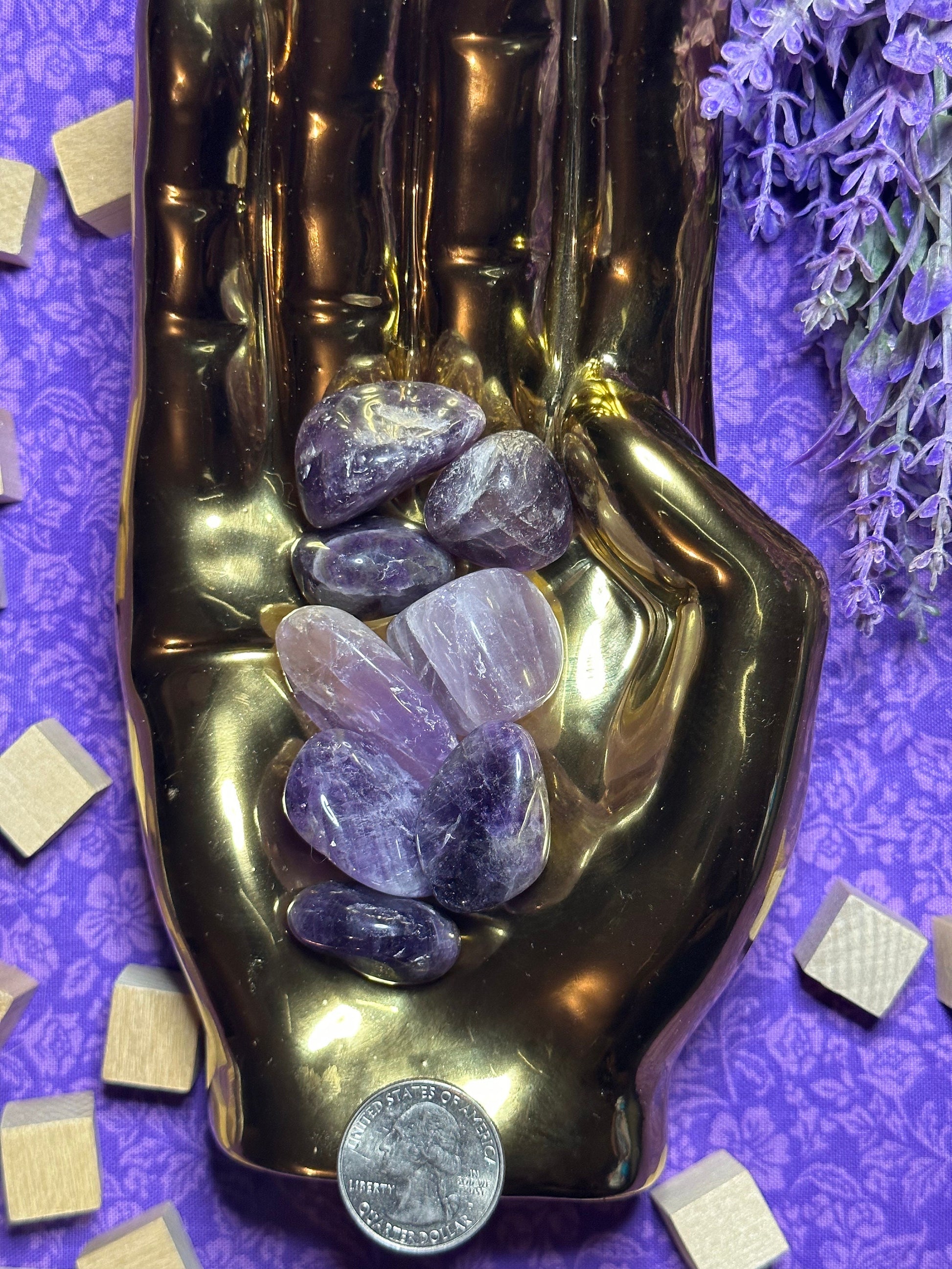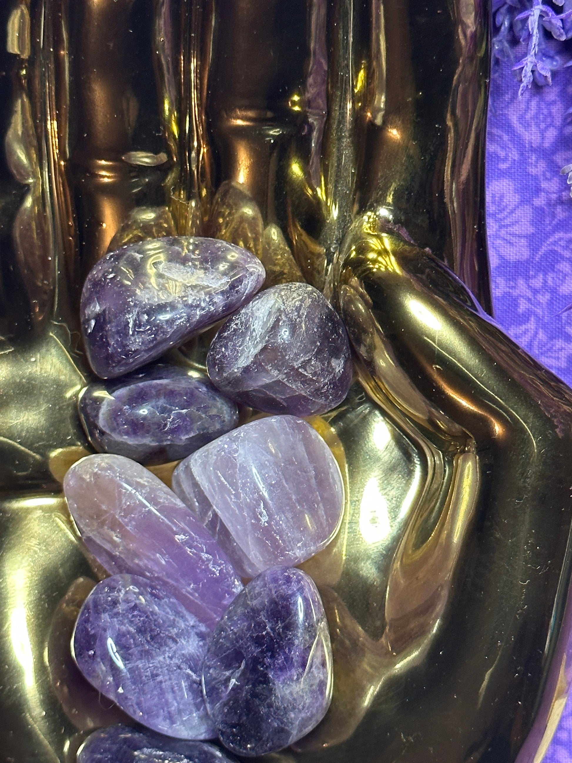 This listing is for one tumbled Amethyst stone, perfect for carrying with you throughout the day or incorporating into your spiritual practice.