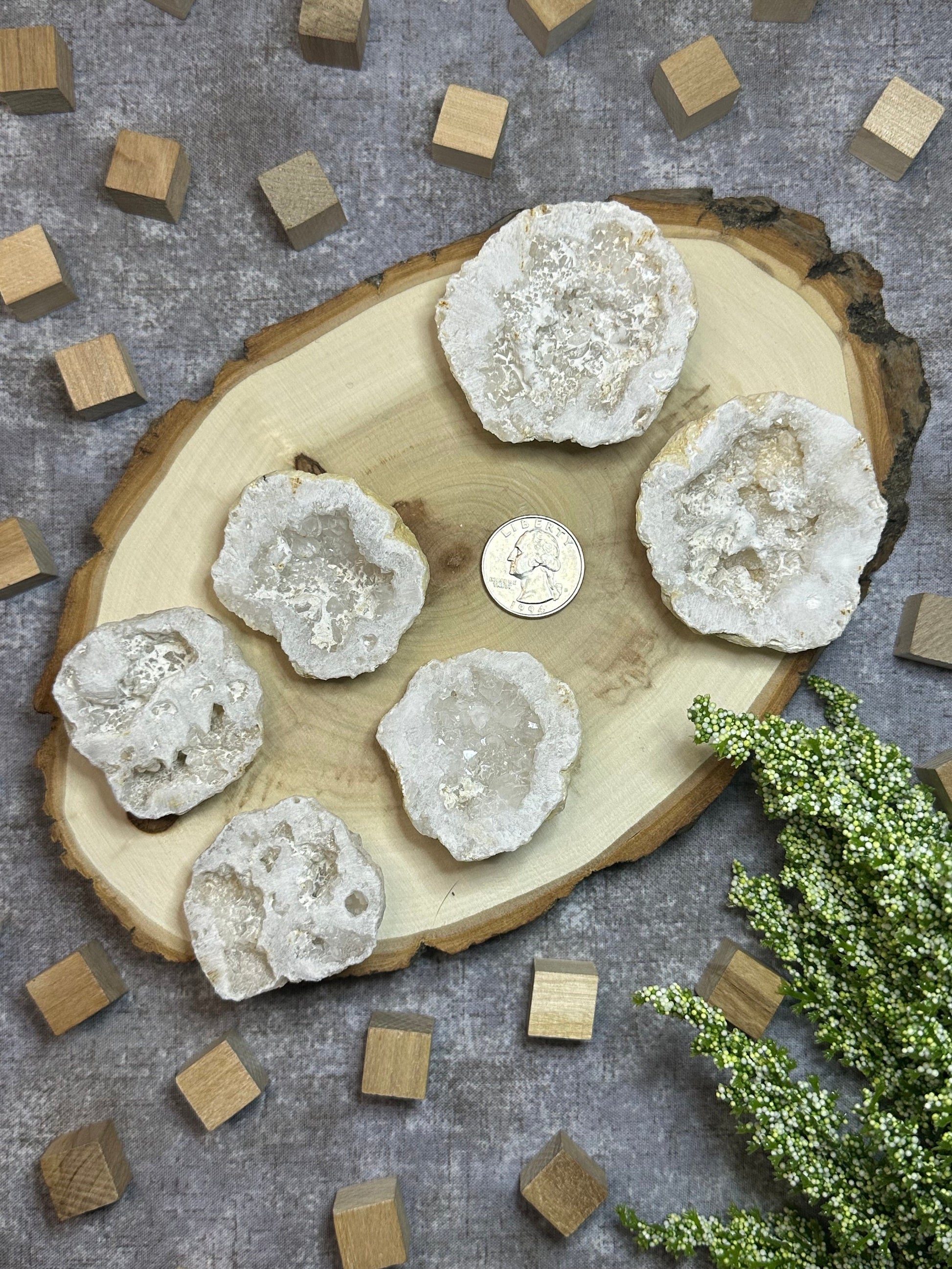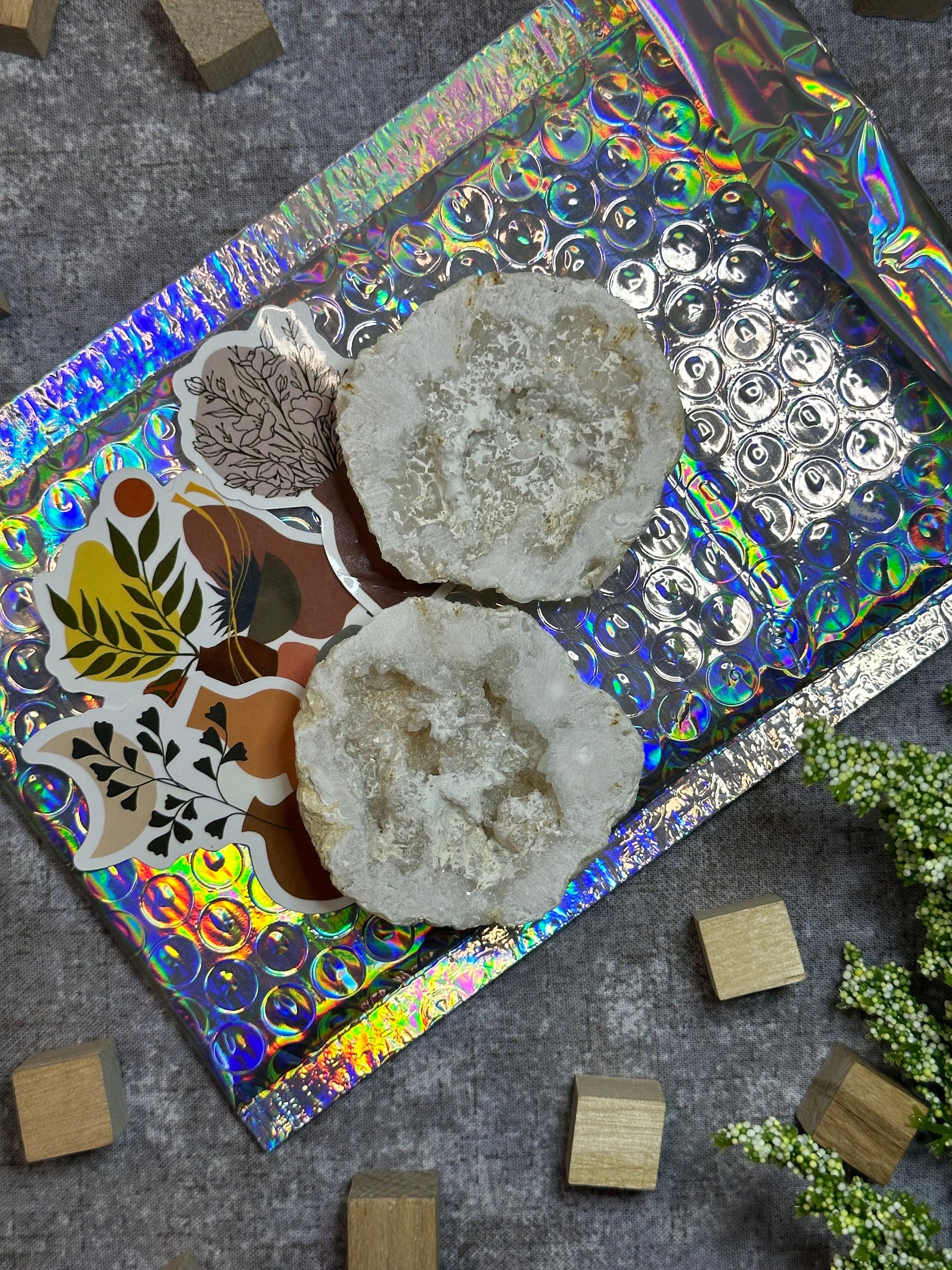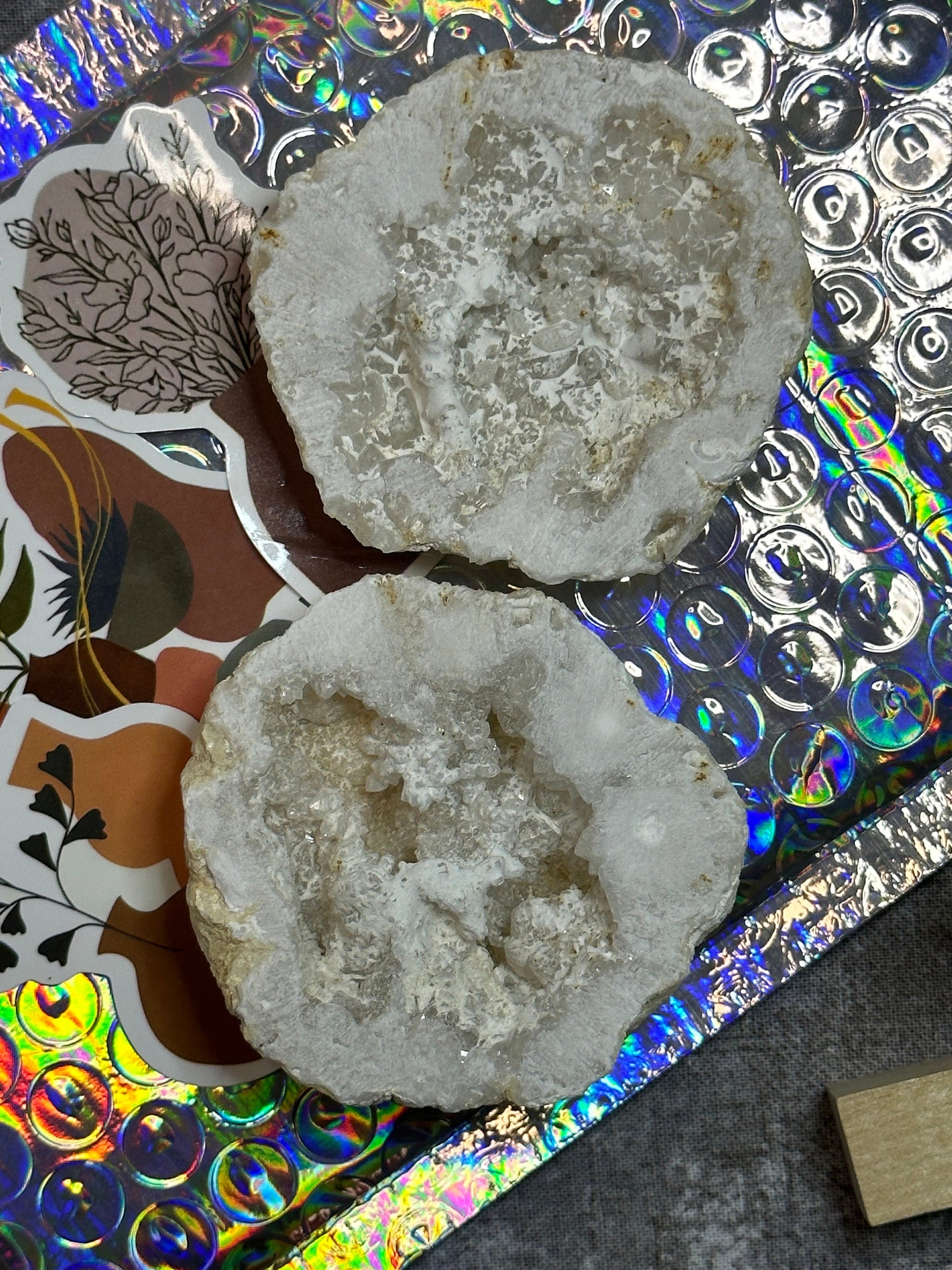 Introducing a stunning Calcite Geode - a unique and beautiful crystal formation that's perfect for enhancing your home decor and promoting positive energy. This listing is for one Calcite Geode. Please note that not all geodes will weigh the same and items are not exact items pictured.