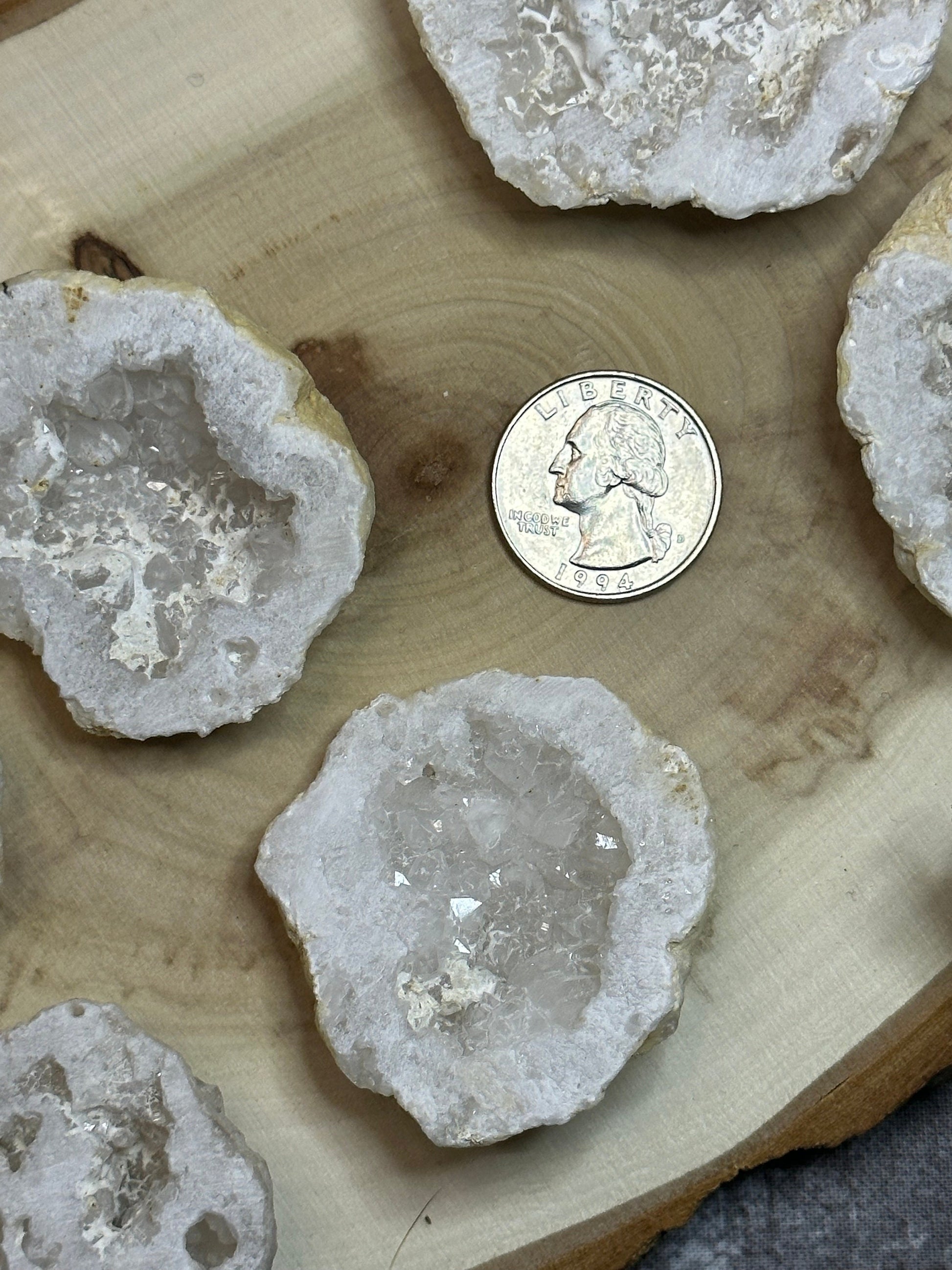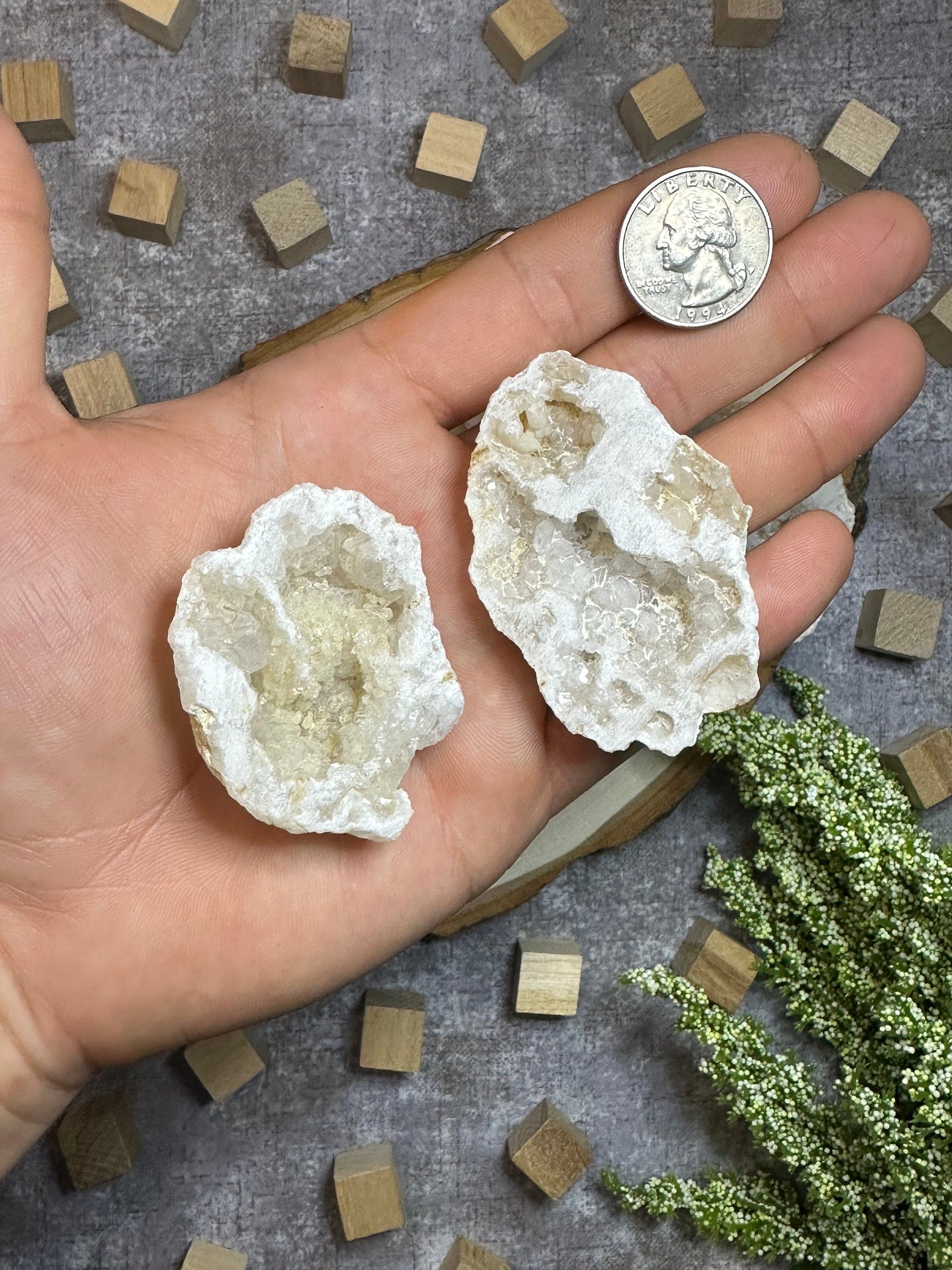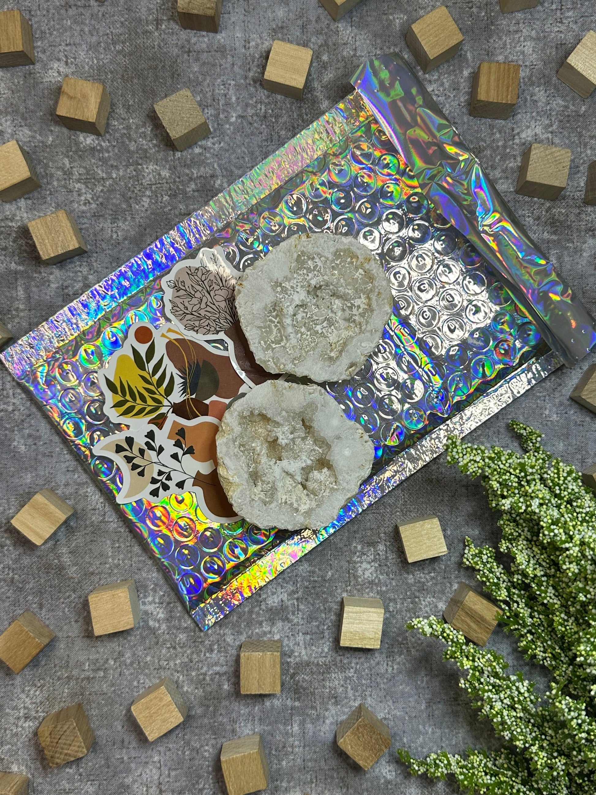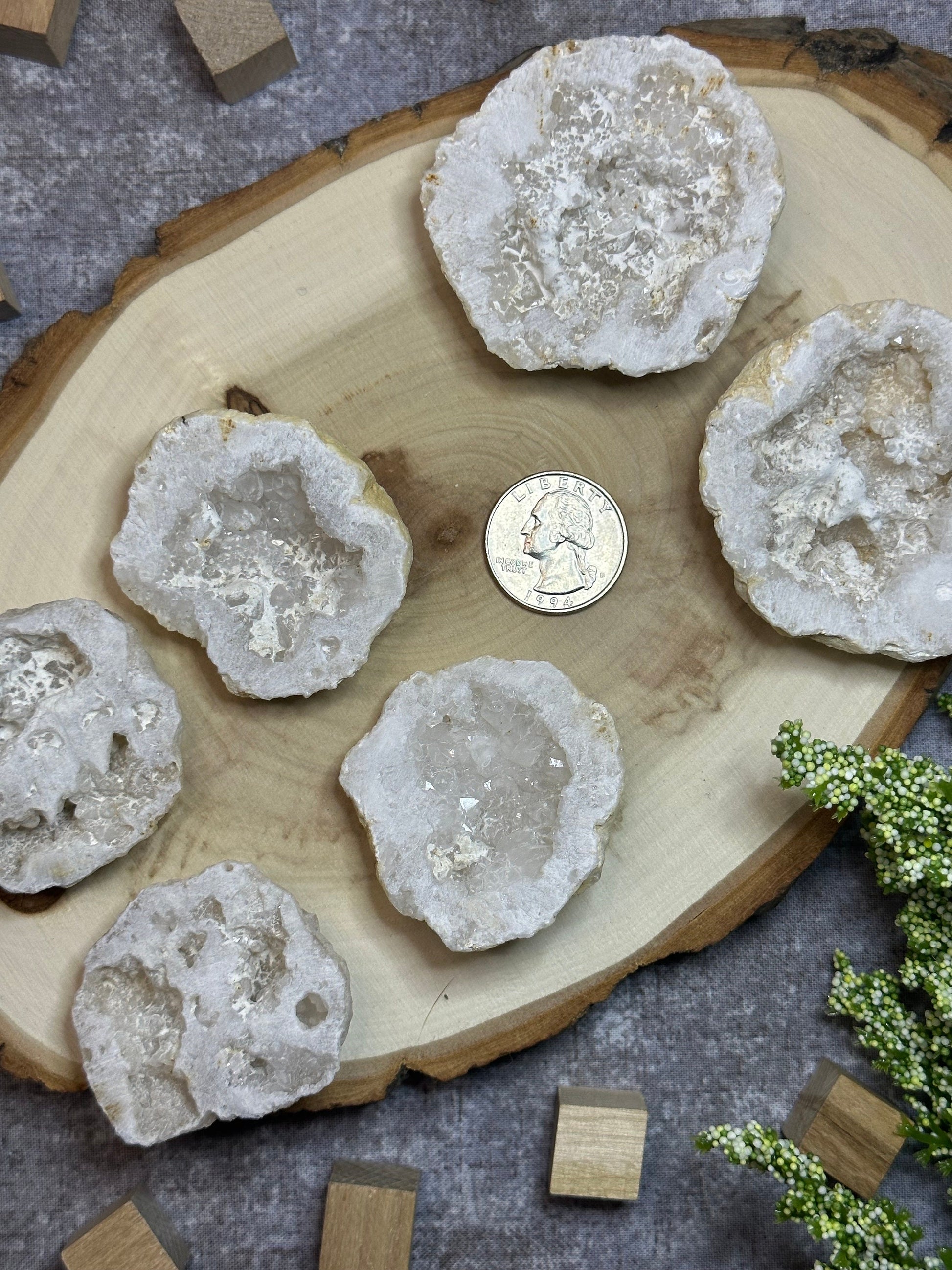 Introducing a stunning Calcite Geode - a unique and beautiful crystal formation that's perfect for enhancing your home decor and promoting positive energy. This listing is for one Calcite Geode. Please note that not all geodes will weigh the same and items are not exact items pictured.