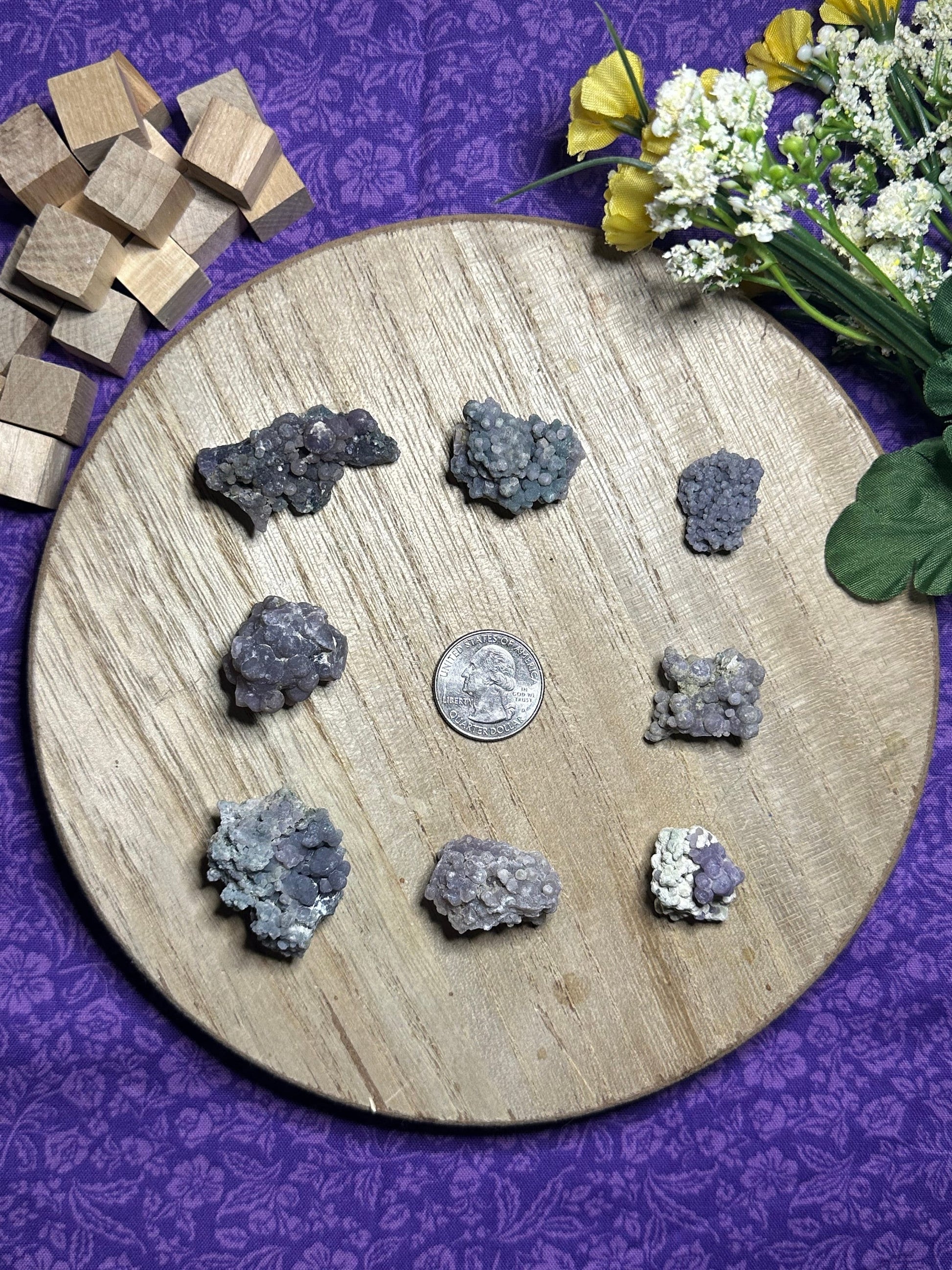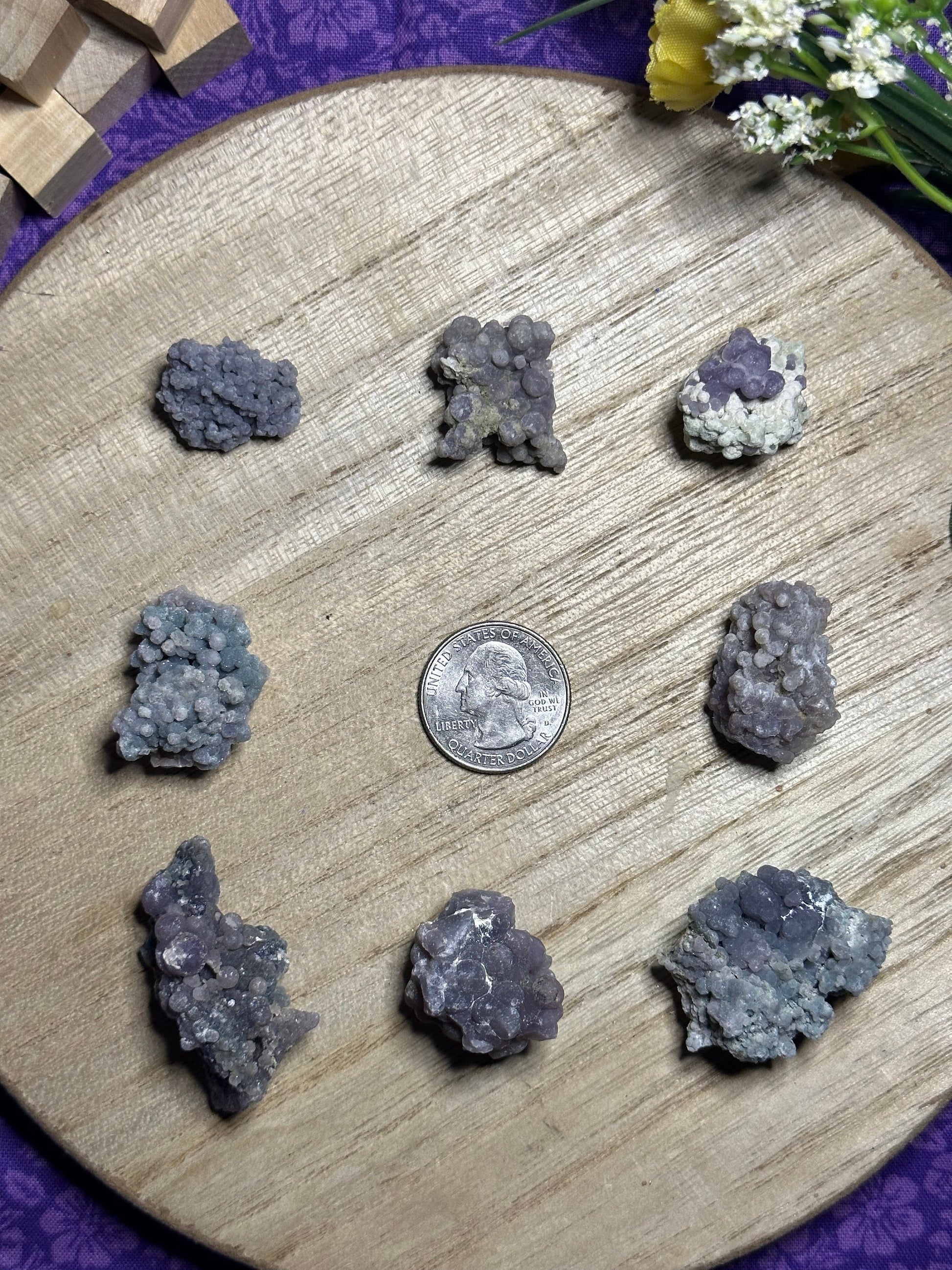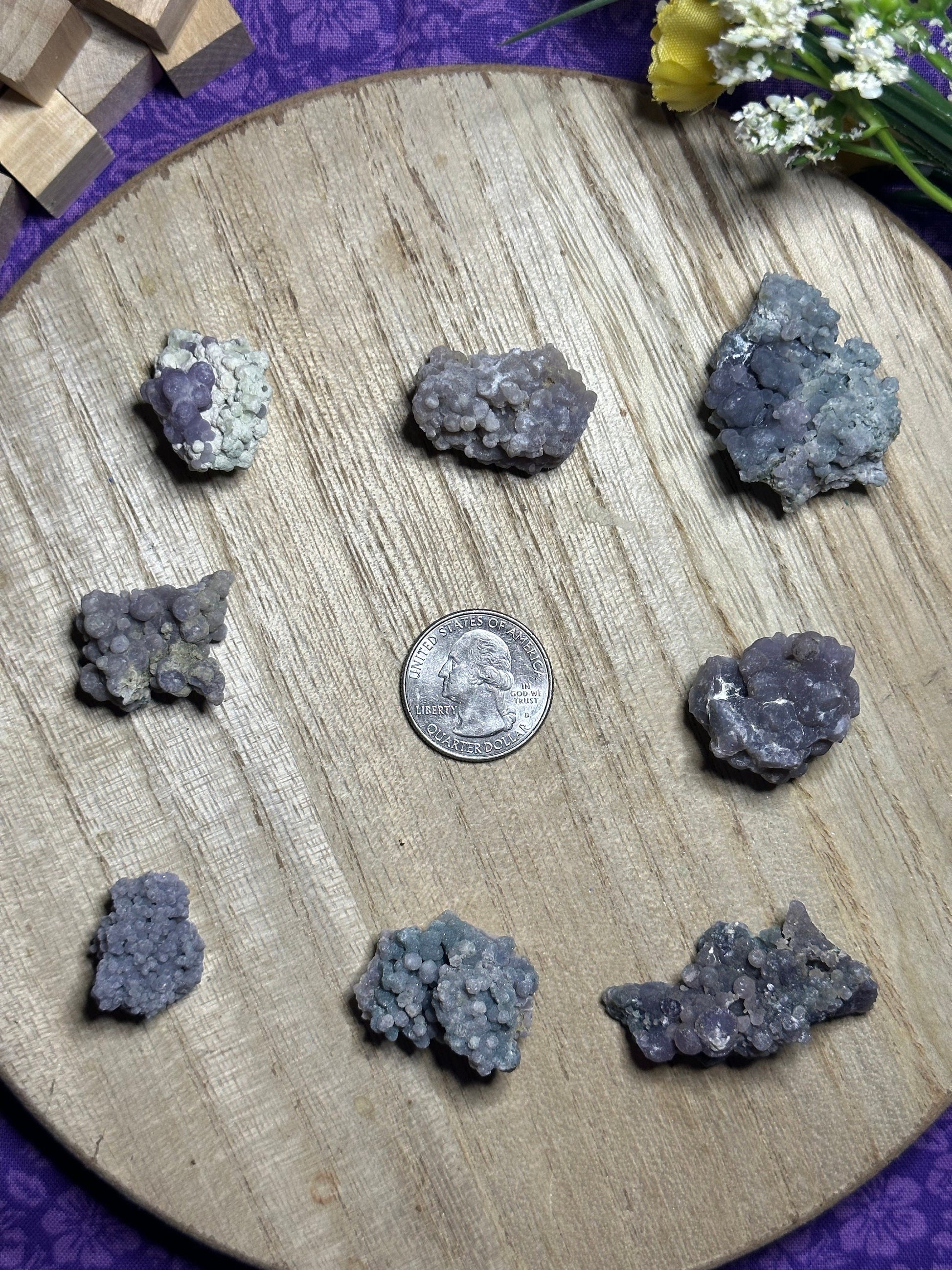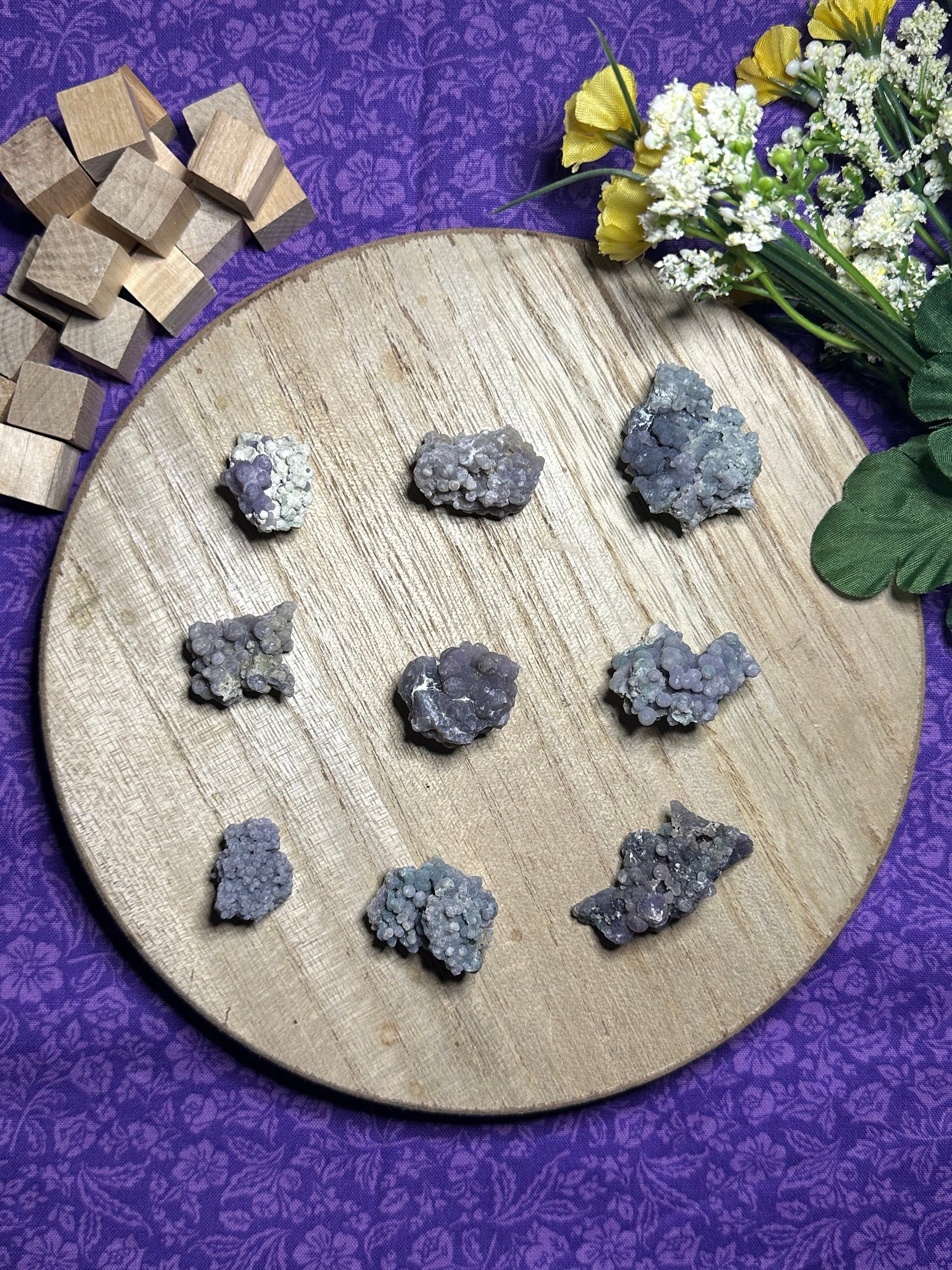 Beauty: Grape Agate is a stunning crystal, with its grape-like clusters of tiny, sparkling crystals. It is believed to bring beauty and harmony to any environment it is placed in.
