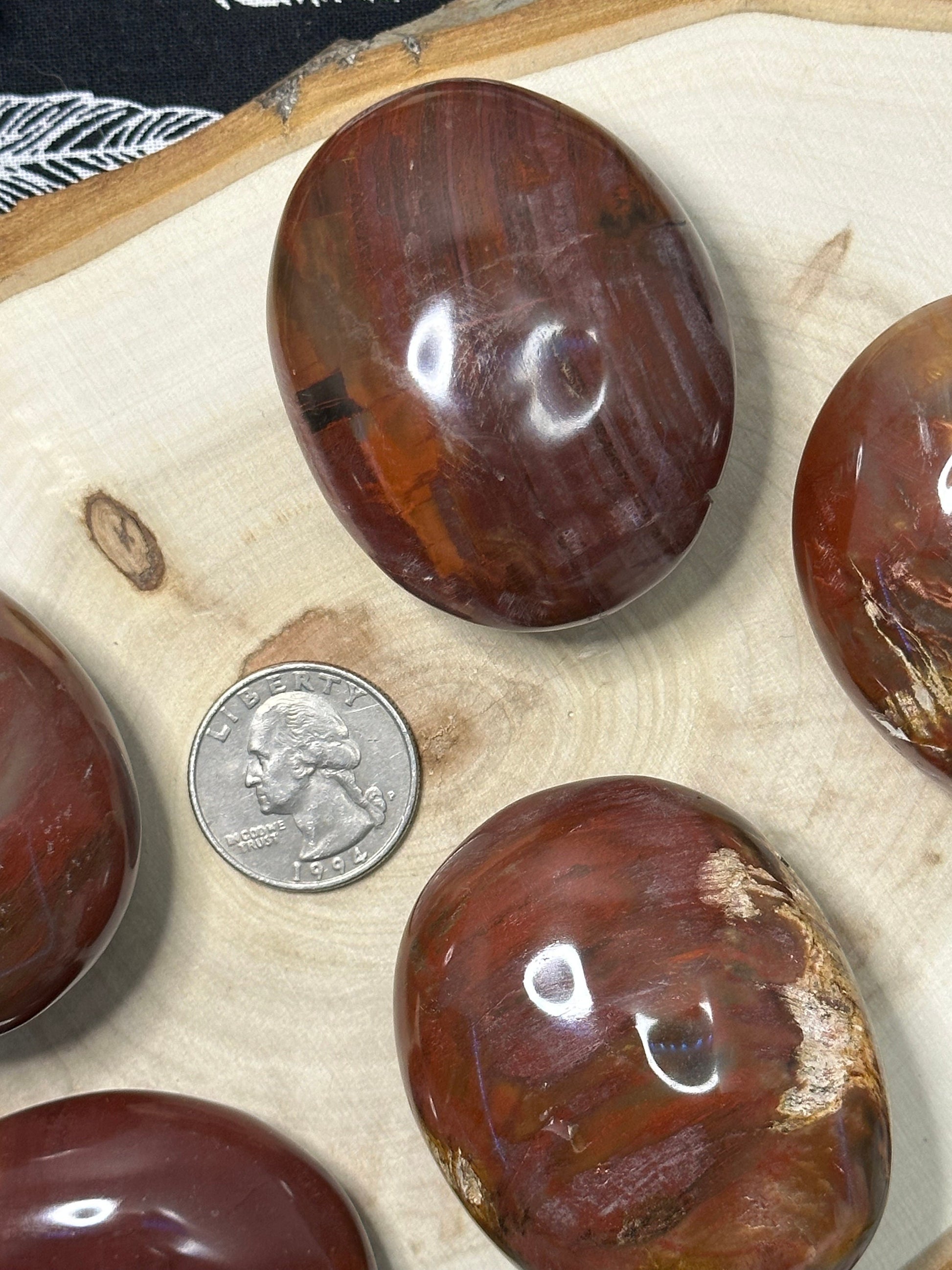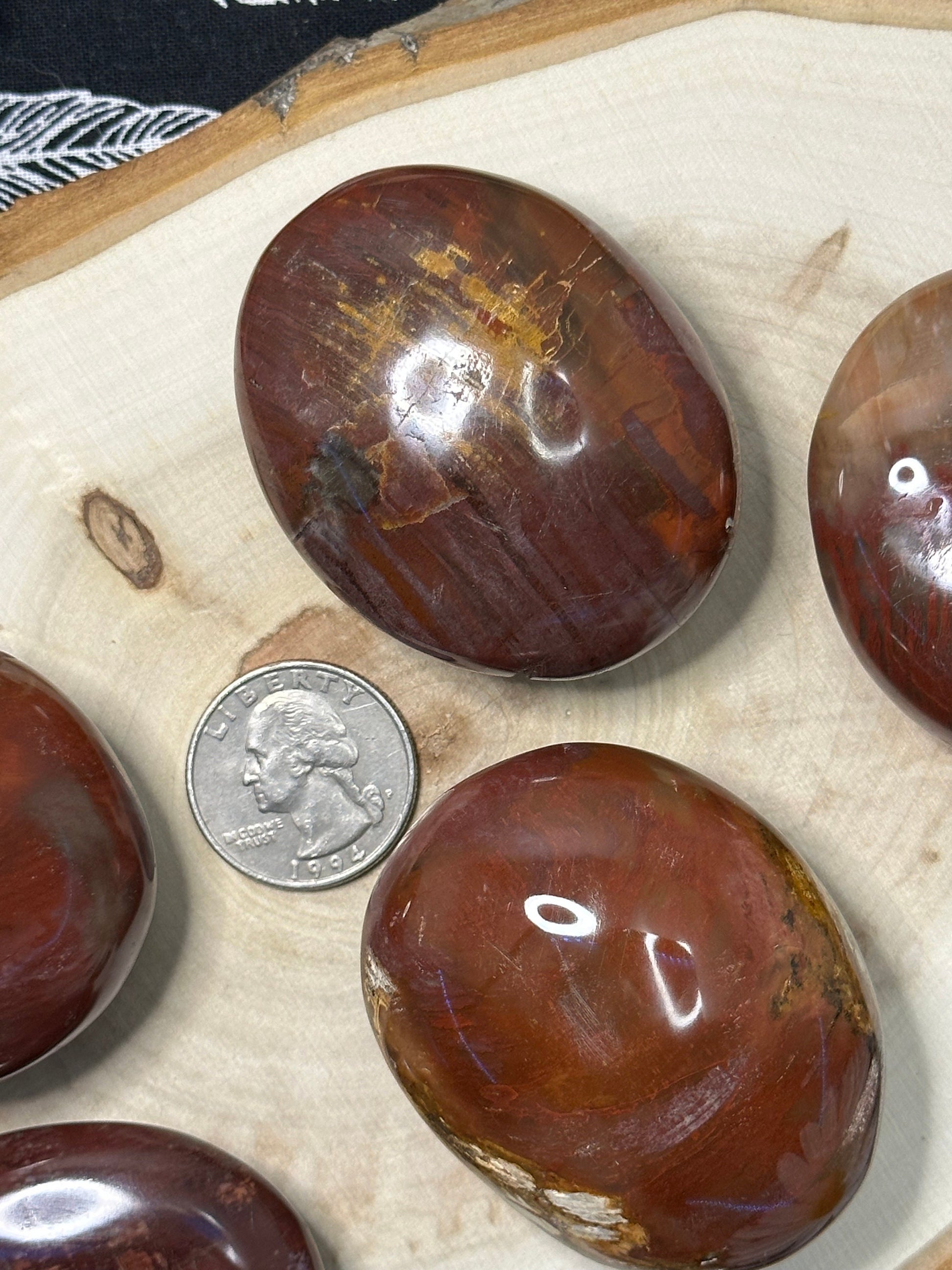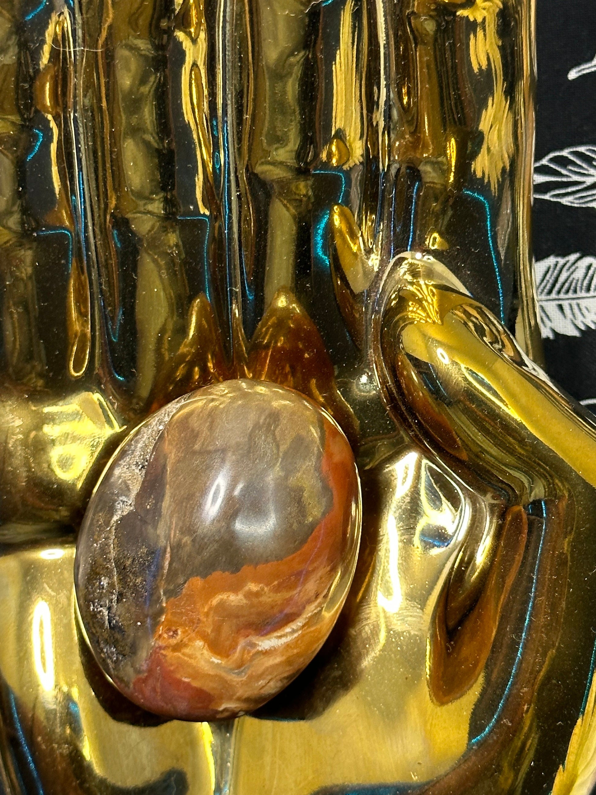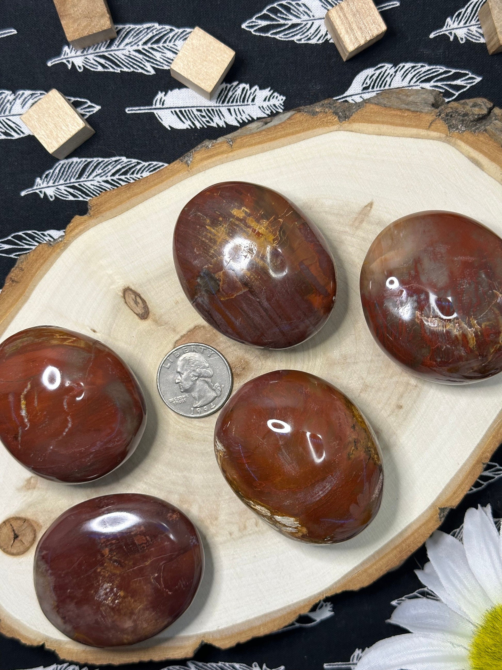 Introducing a stunning Petrified Wood palm stone - a powerful and beautiful crystal that's perfect for grounding and promoting strength. This listing is for one Petrified Wood palm stone. Please note that not all stones will be identical in size, shape or color and may have natural inclusions.