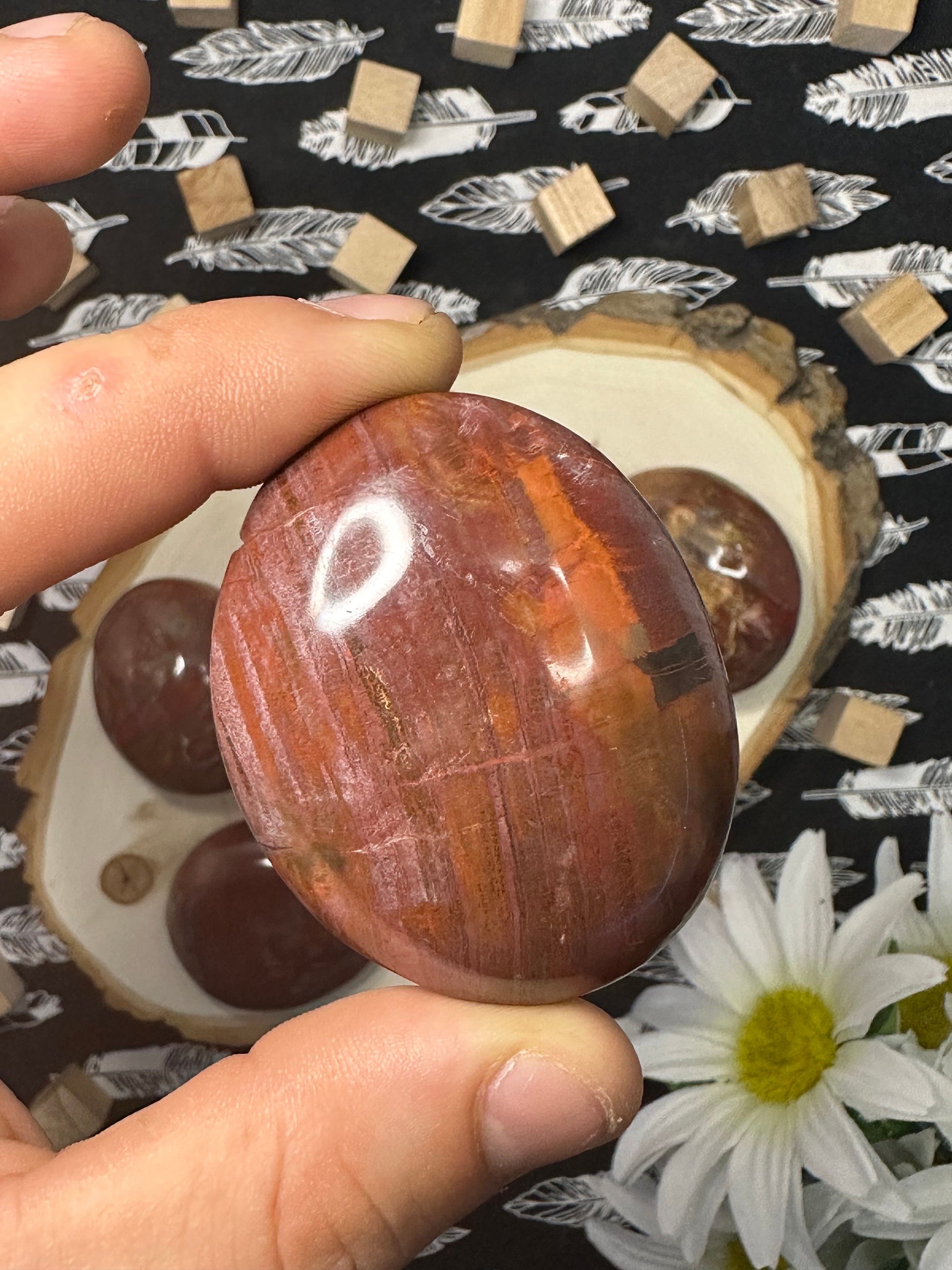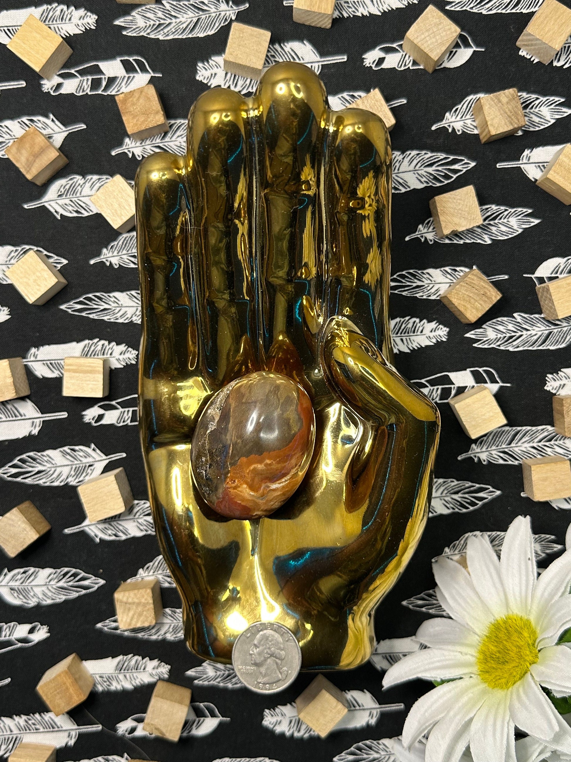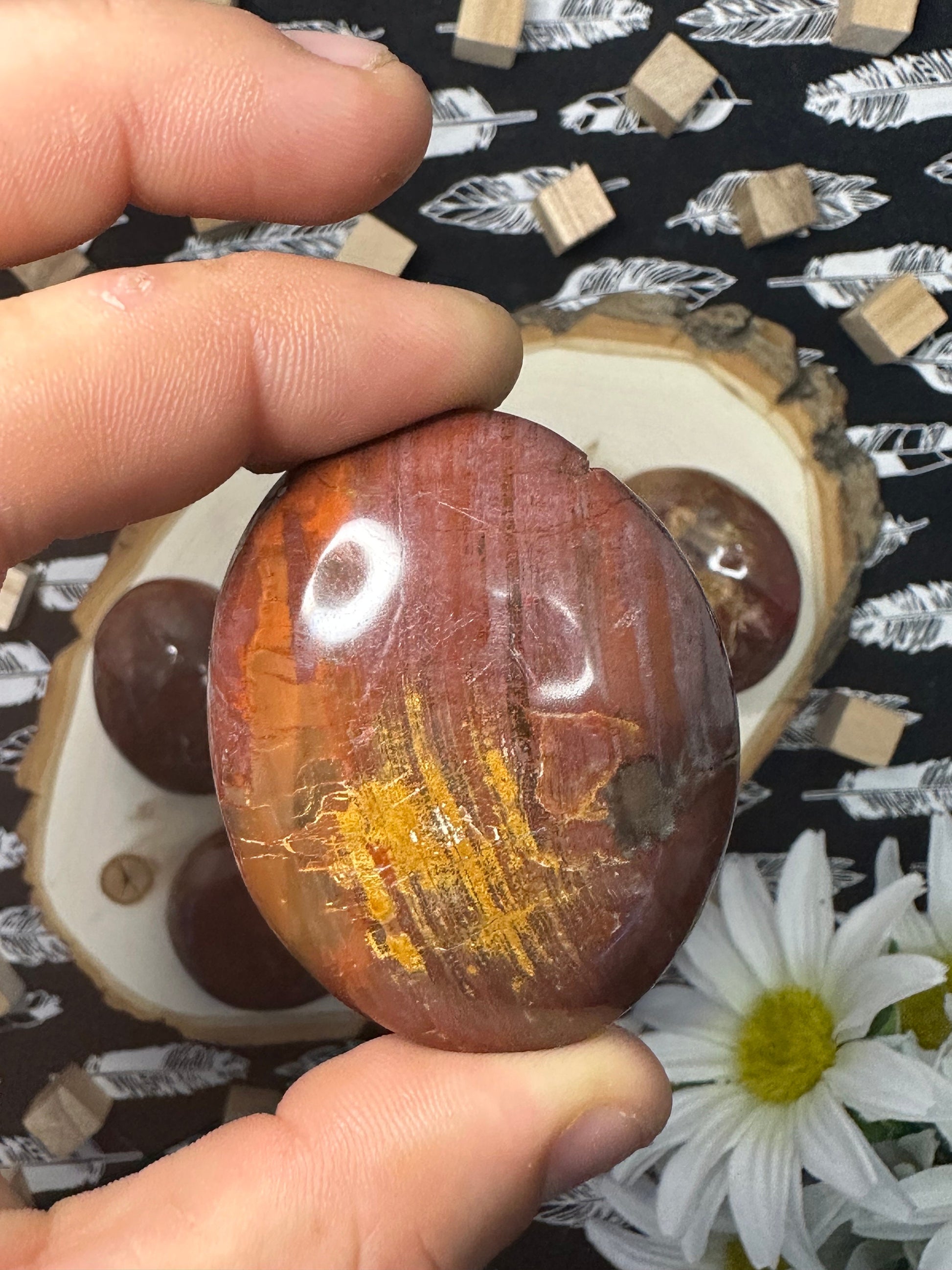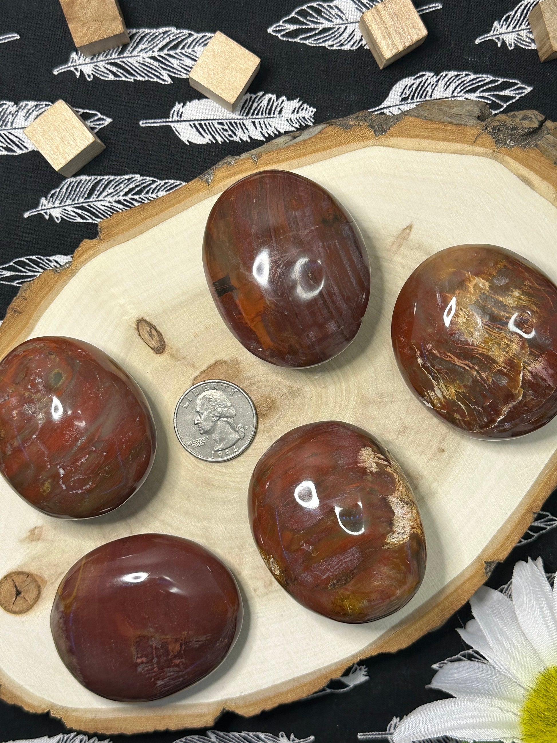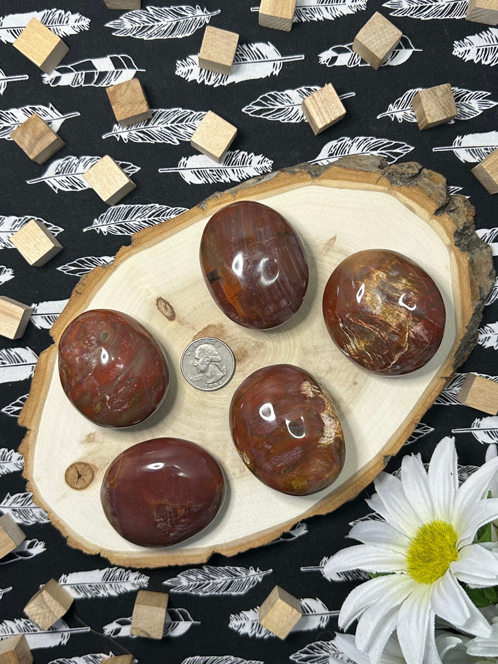 Introducing a stunning Petrified Wood palm stone - a powerful and beautiful crystal that's perfect for grounding and promoting strength. This listing is for one Petrified Wood palm stone. Please note that not all stones will be identical in size, shape or color and may have natural inclusions.