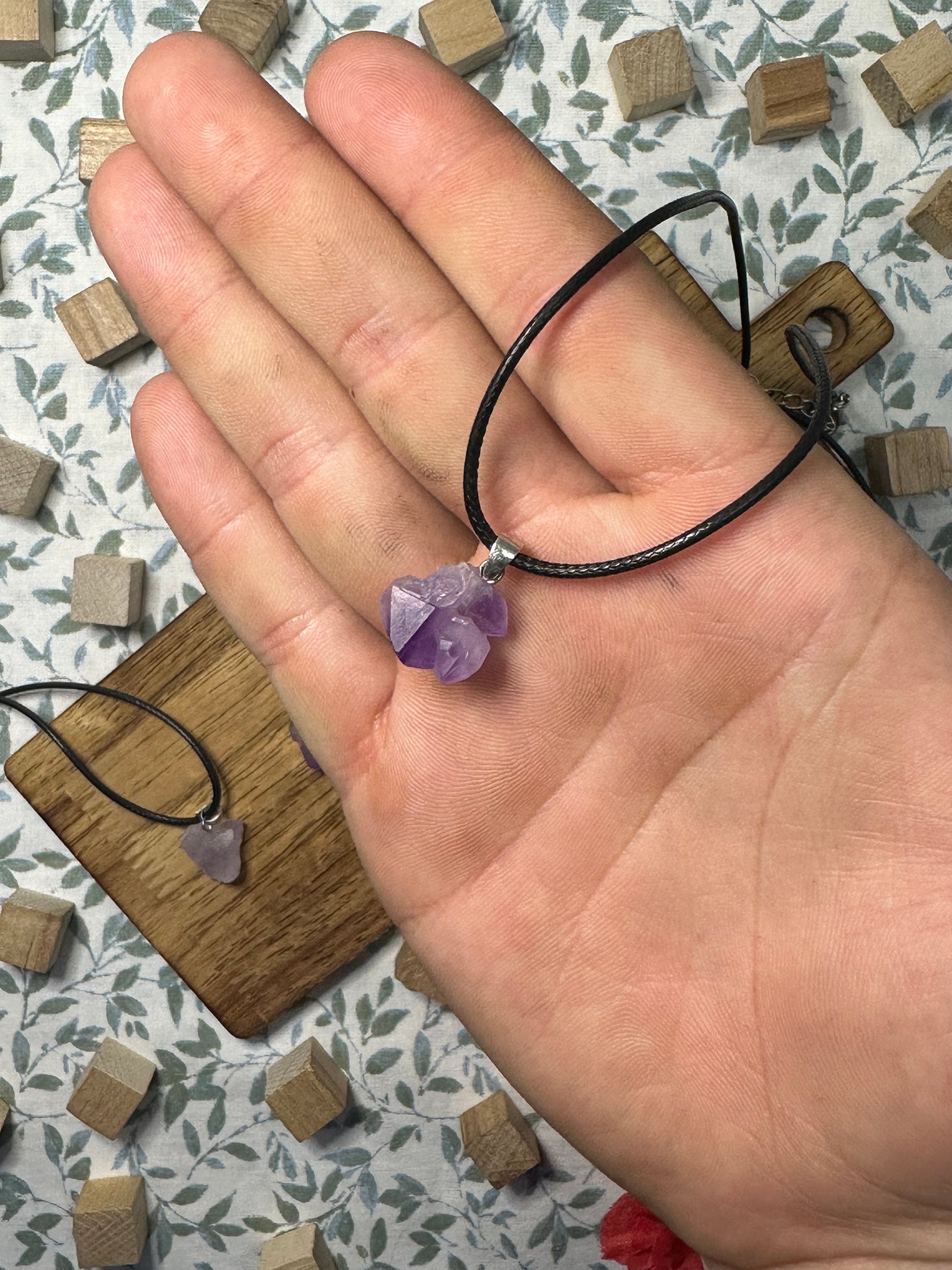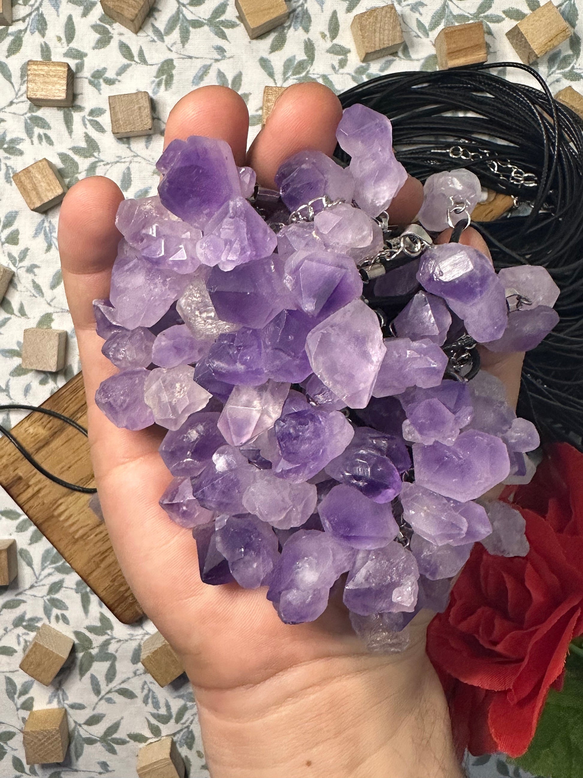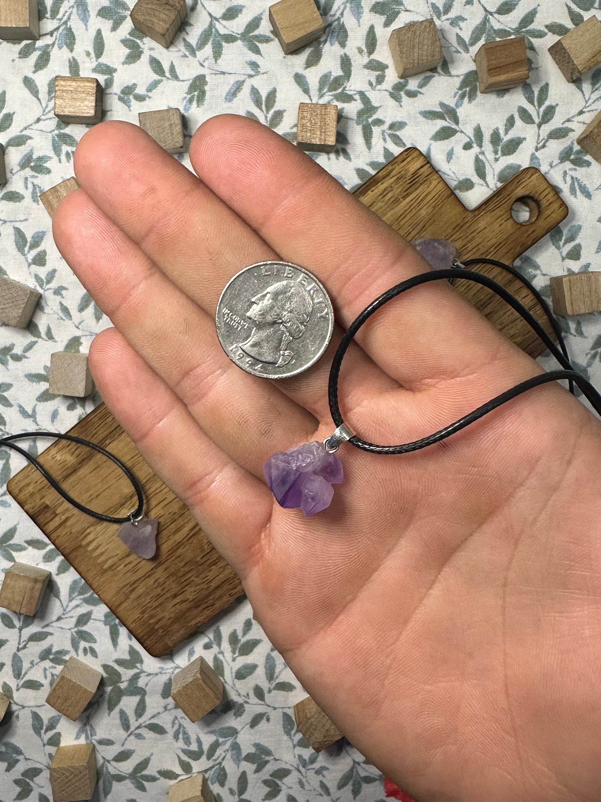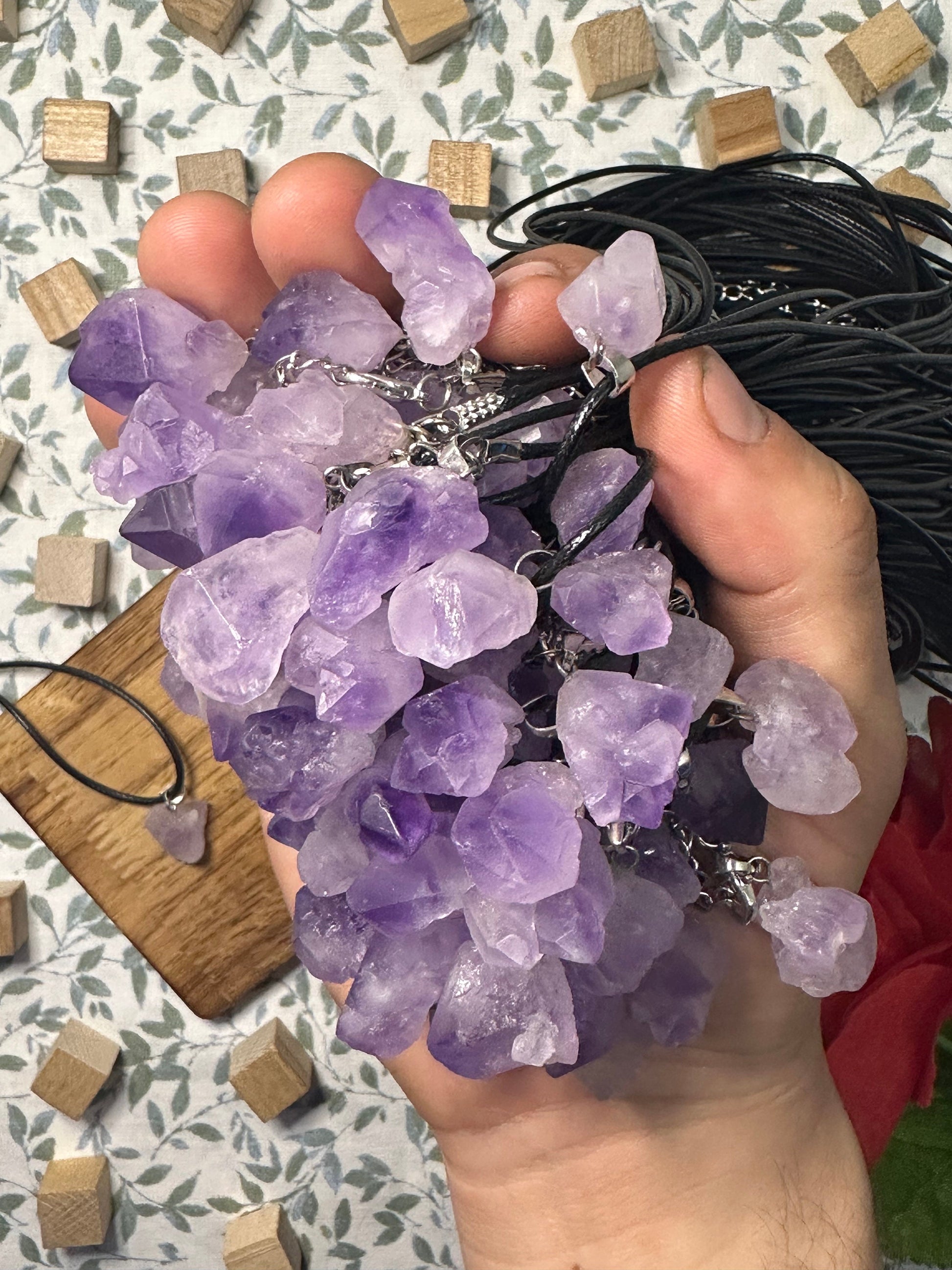 Raw Amethyst Crystal Necklace Natural Amethyst Crystal Pendant Necklace Beautiful Unisex Purple Crystal Amethyst Necklace 18 in. 1. 1/2 ft.