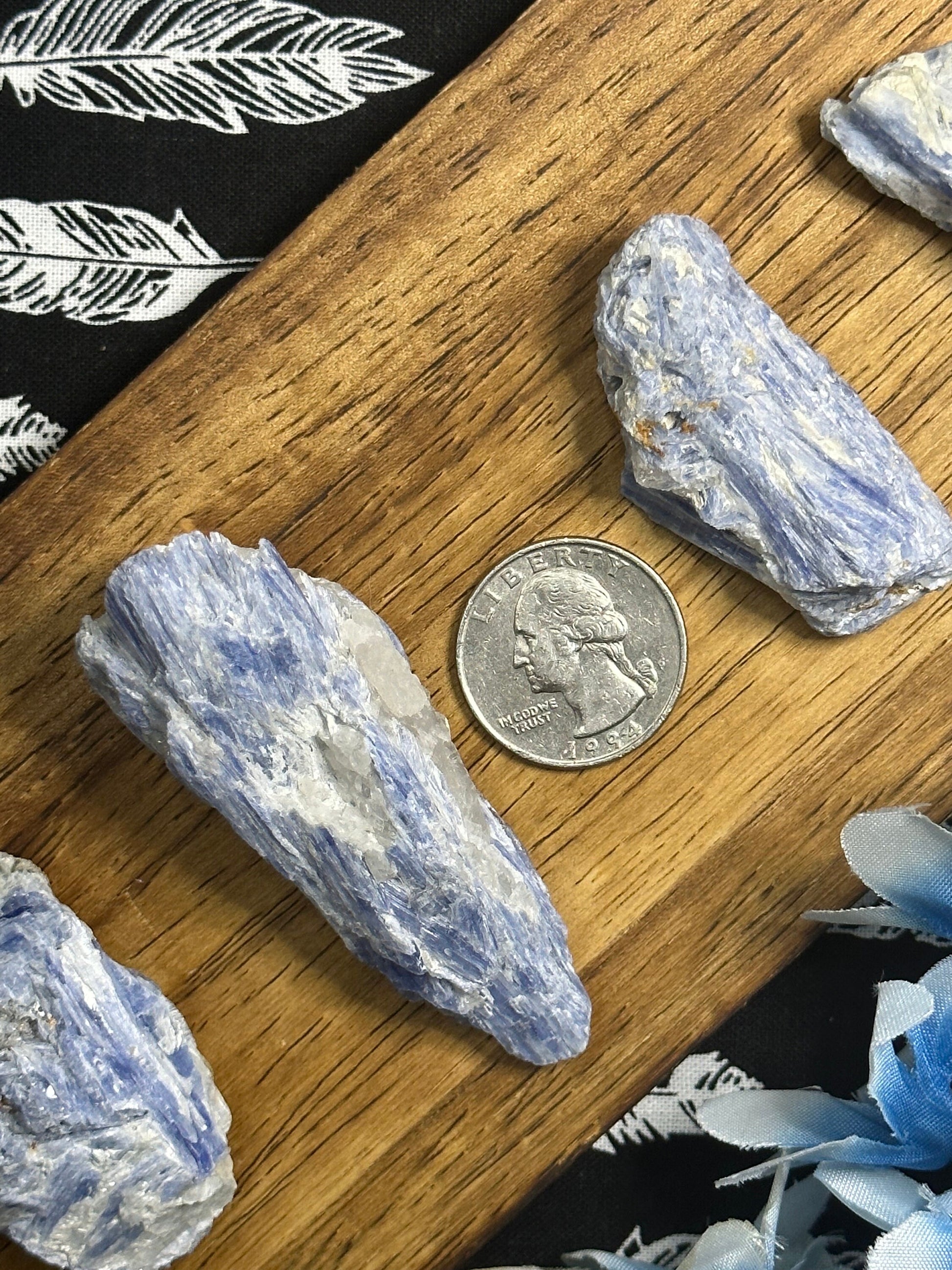 This listing is for one Raw Kyanite specimen, perfect for displaying on your desk, bookshelf, or altar.