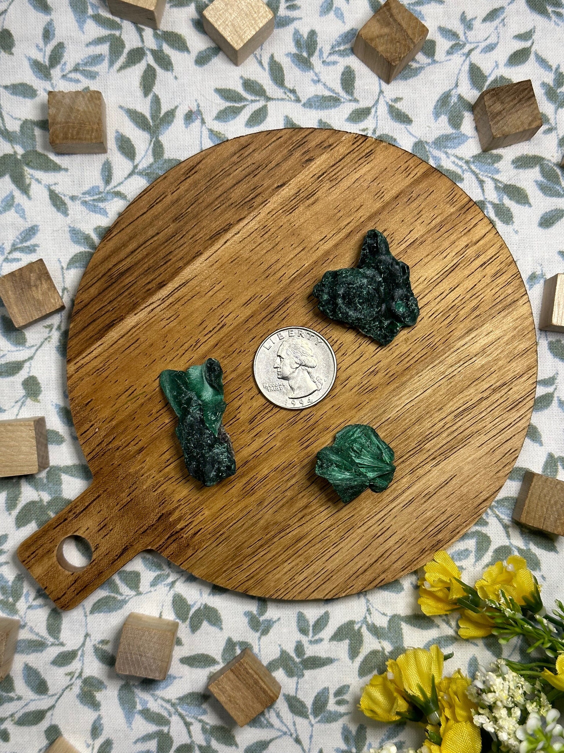 This listing is for one raw Velvet Malachite specimen, perfect for displaying on your desk, bookshelf, or altar.